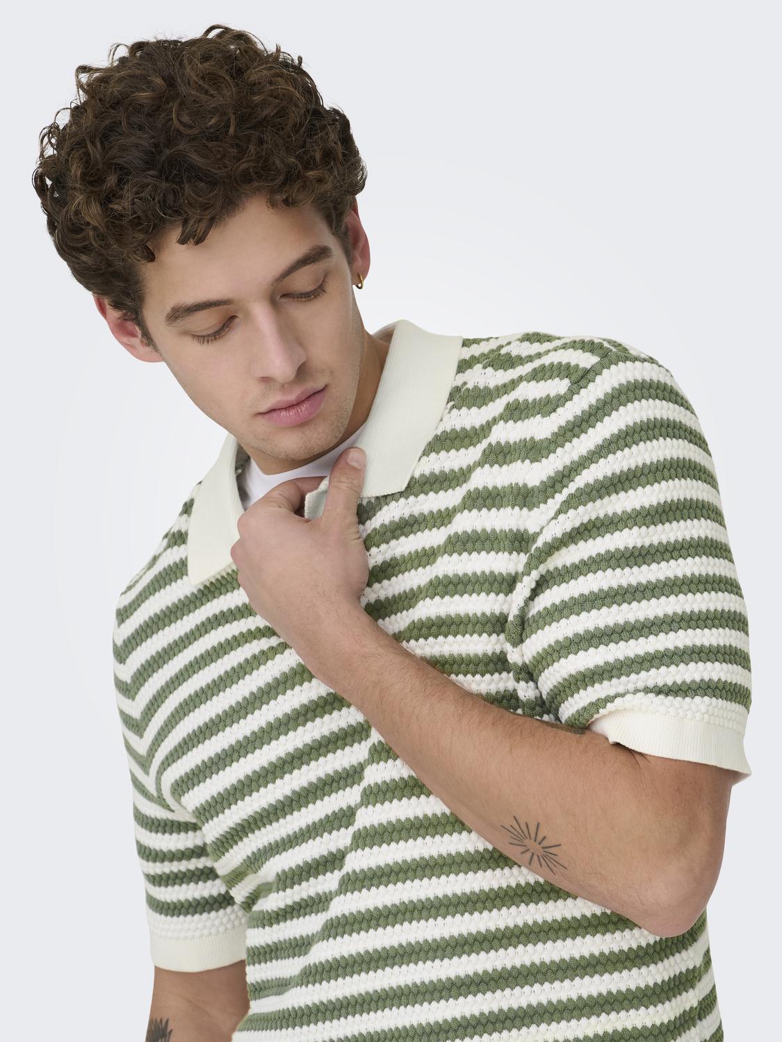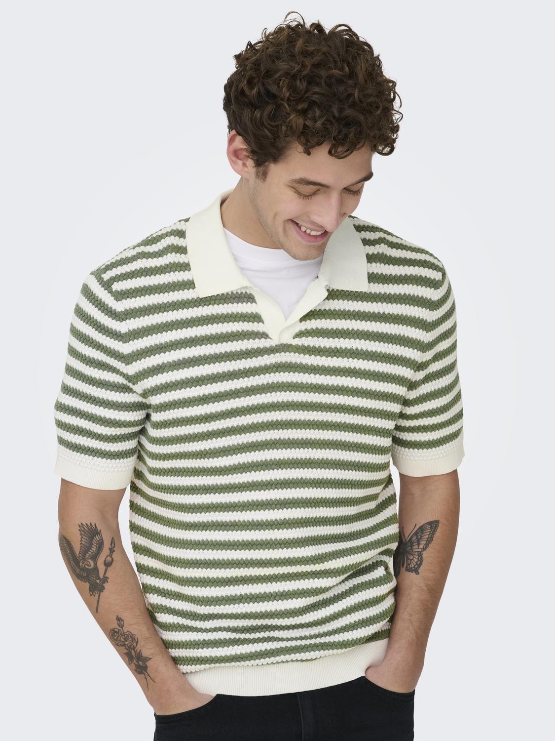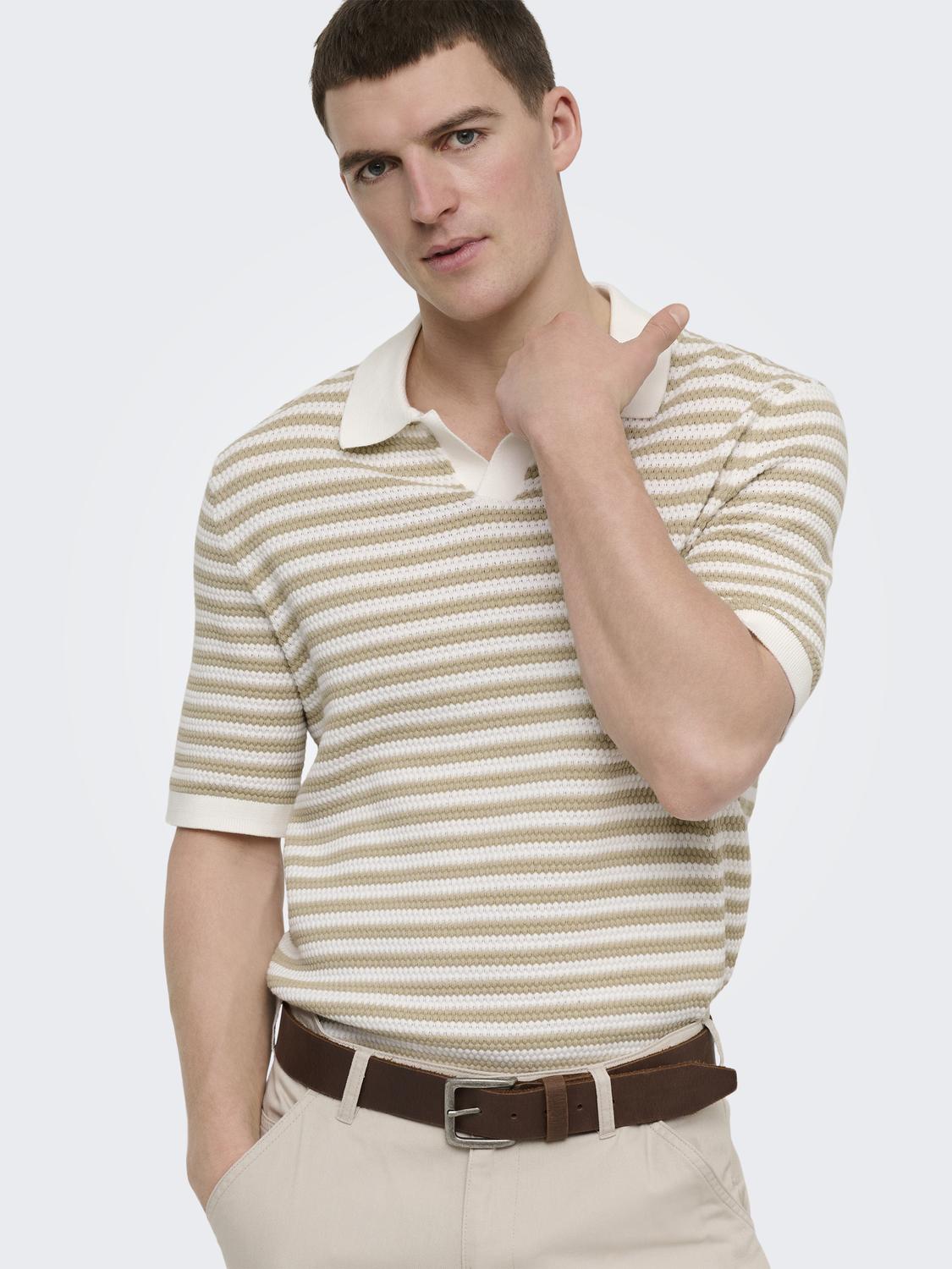 Ordinær pris 449,95 krGi garderoben din et friskt preg med denne strikkede polohalsen fra ONLY & SONS. Den lette og tidløse stilen passer perfekt til vårens antrekk.