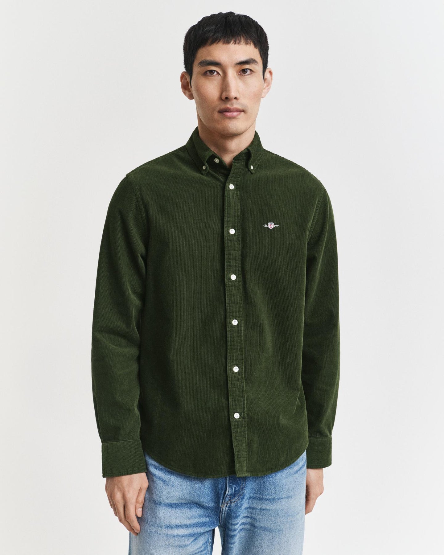 Ordinær pris 1.500,00 krReg Corduroy Shirt er laget av premium bomull cordfløyel og er et must-have for de skiftende årstidene. Denne skjorten har en knapp-ned krage, justerbare mansjetter, buet hem, resirkulerte polyesterknapper, en bokspliss og en opphengsløkke bak. Den er også dekorert med GANTs arkivskjold broderi på brystet.