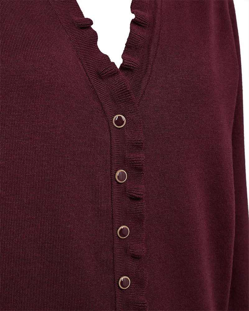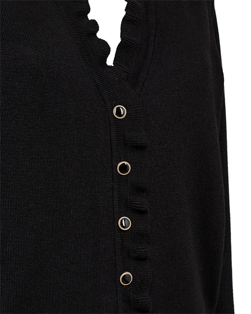 Design: O-hals, lange ermer og knappelukking for en klassisk og tidløs stil.