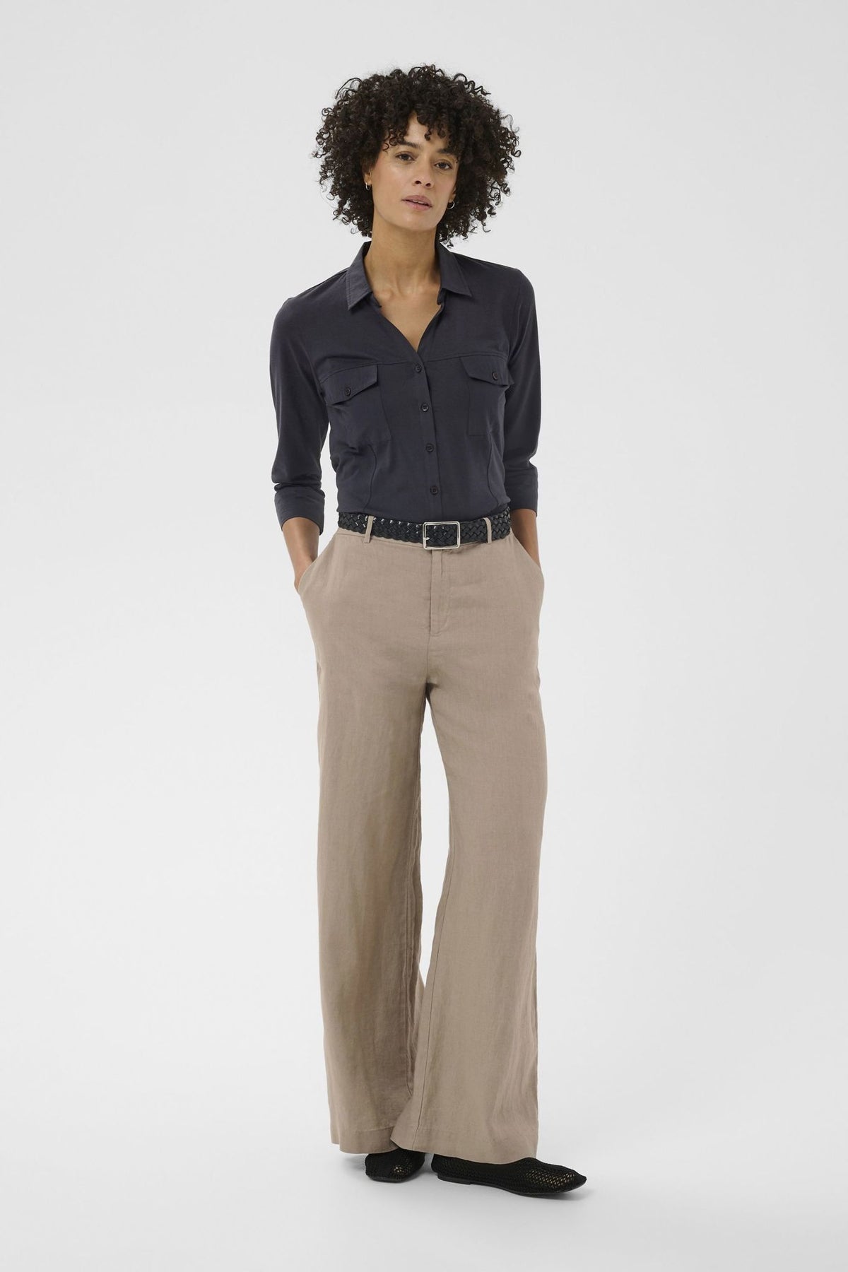 Materiale: 55% lin, 45% viskose - Lin er et naturlig fiber kjent for sin pusteevne og holdbarhet, mens viskose gir en myk og behagelig følelse mot huden.