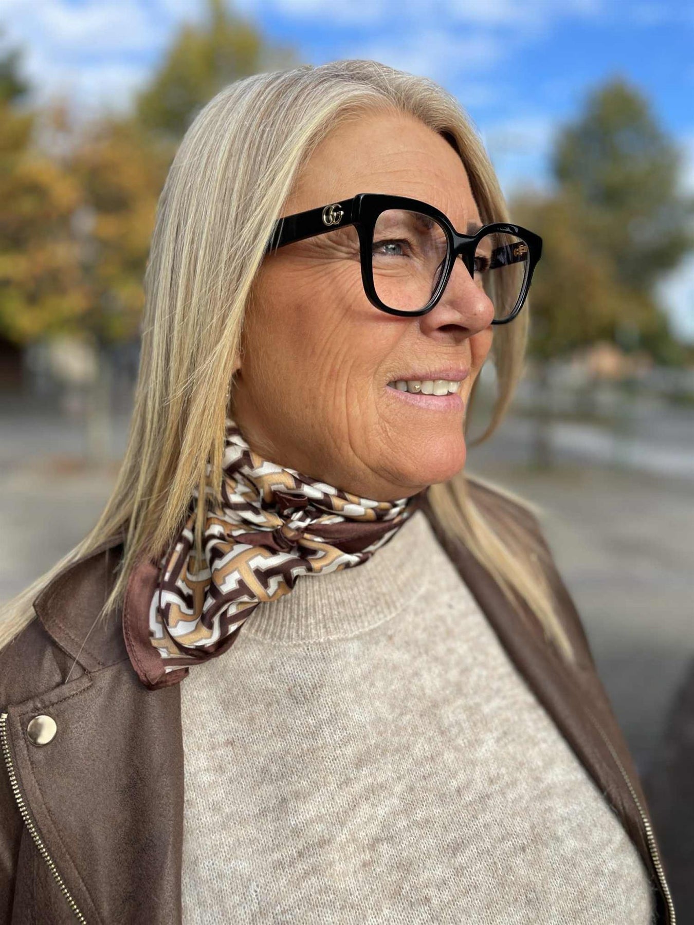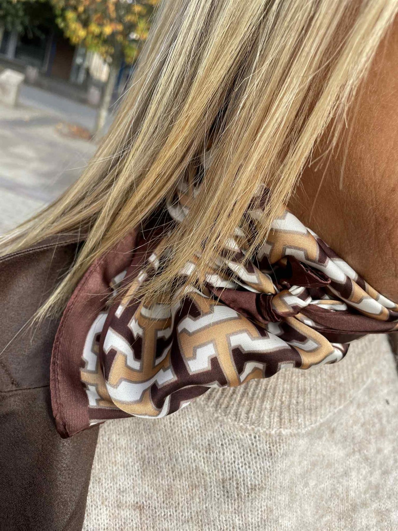 Lekkert satengskjerf i bruntoner fra Endless