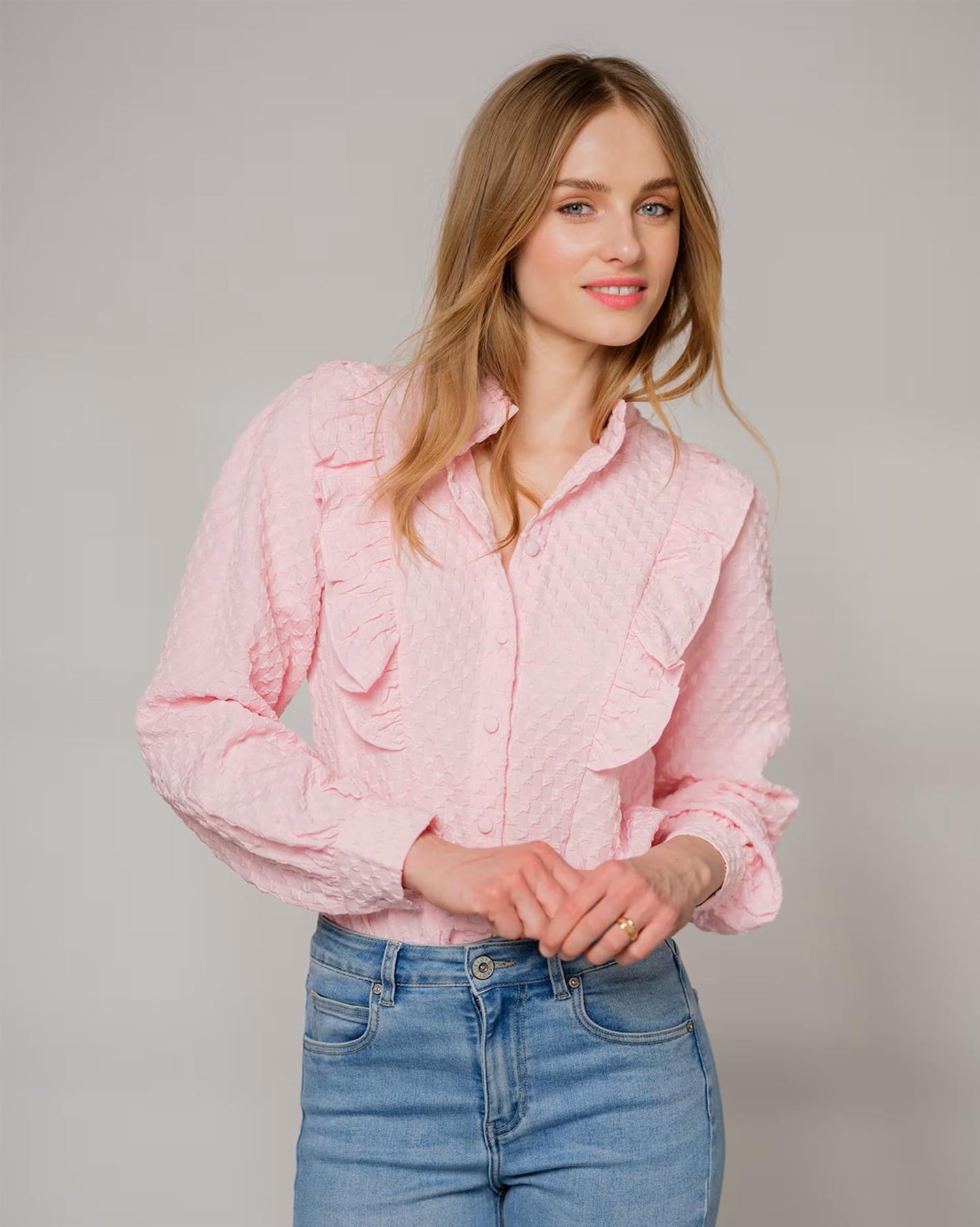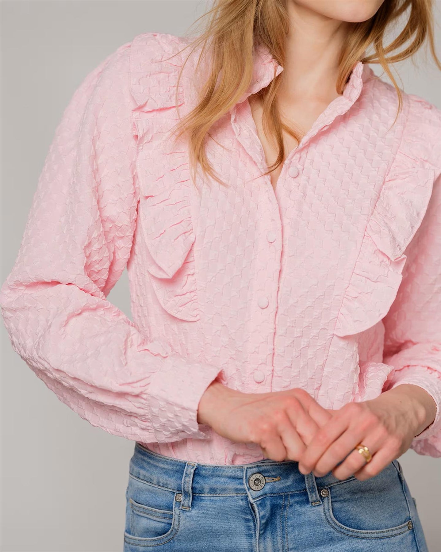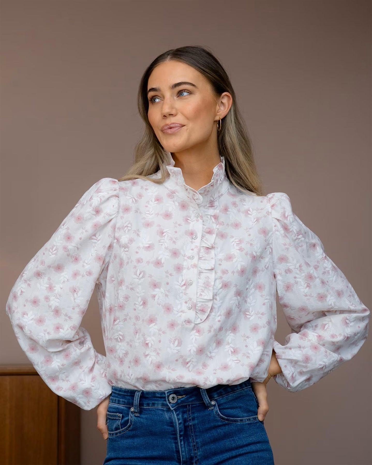 Ordinær pris 799,95 krSandra Strawberry i en delikat rose petalfarge, perfekt for en feminin og stilfull look. Laget av 100% bomull, gir denne overdelen både komfort og pusteevne, noe som gjør den ideell for hverdagsbruk.