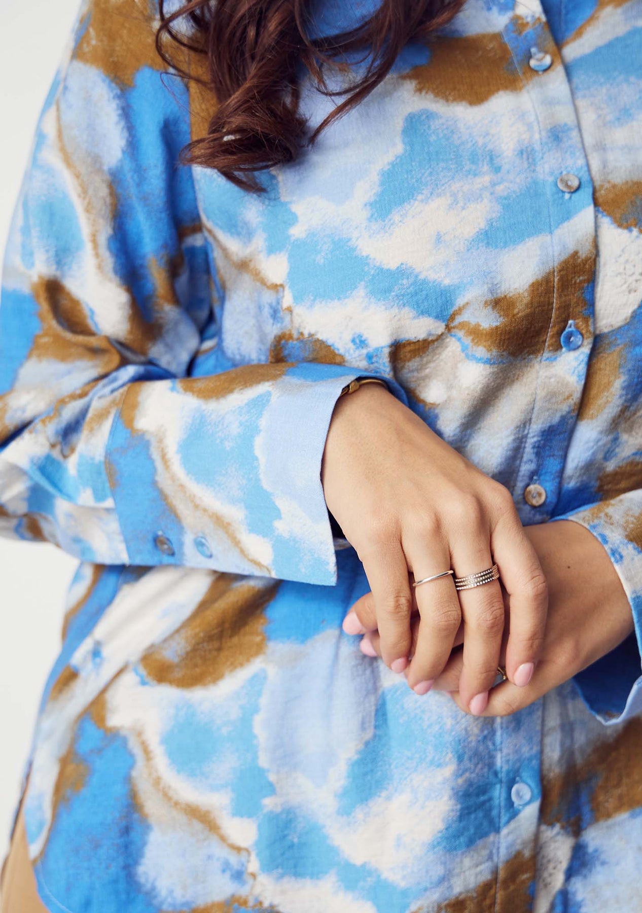 Lekker skjorte i lekre blå og bruntoner med klassisk krage og knappelukking foran