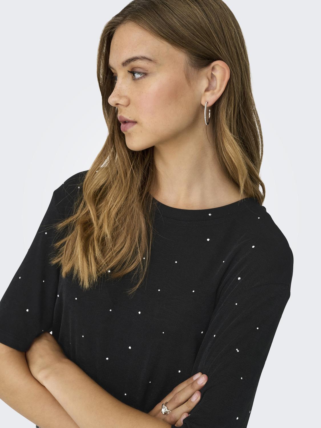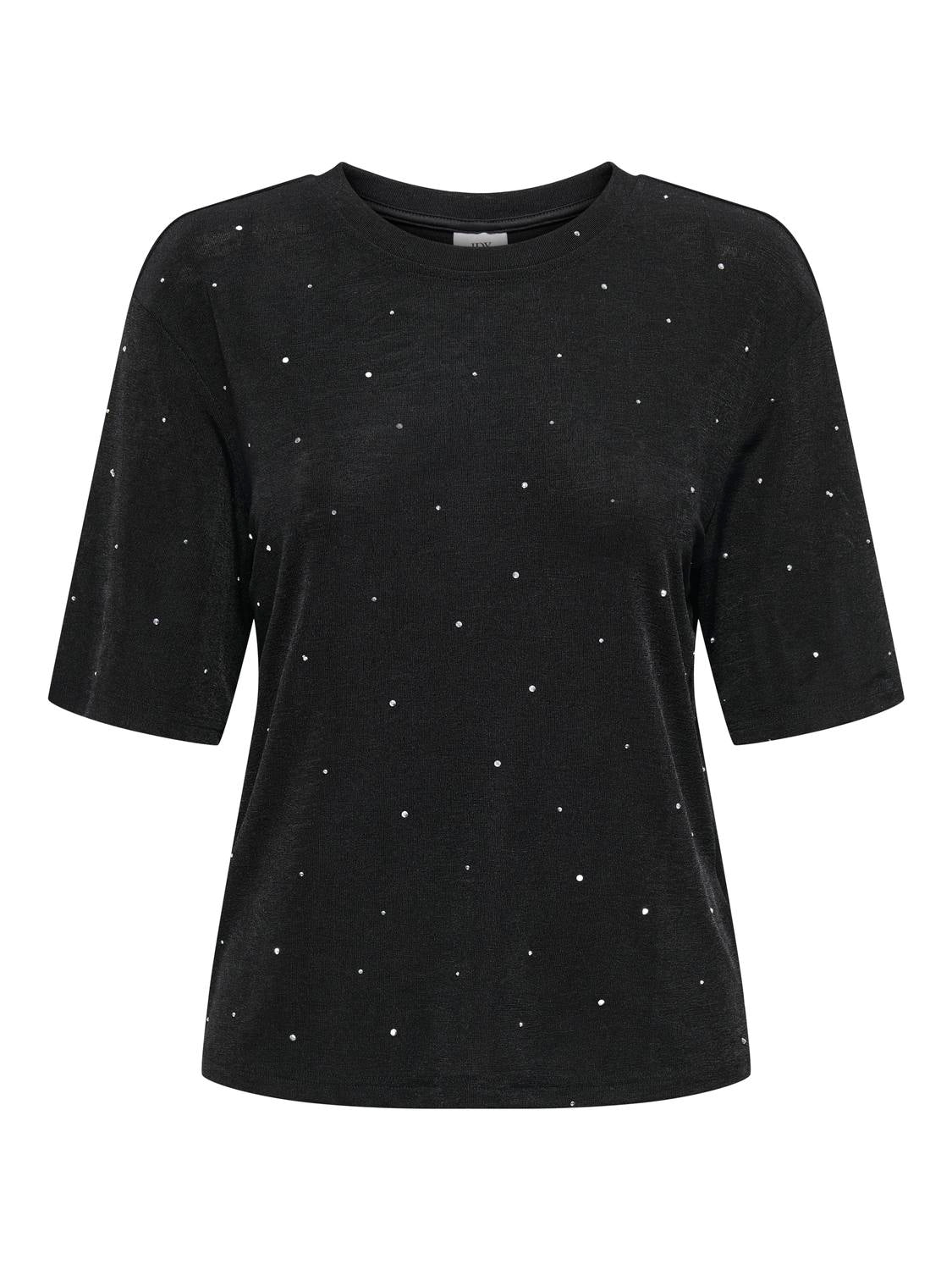 Ordinær pris 379,95 krJDYPRIME S/S STUDS TOP JRS er en stilren festtopp i sort, perfekt for å feire hverdagen eller spesielle anledninger. Den myke og stretchy jerseyen gir en komfortabel passform, mens paljettdetaljene tilfører et glamorøst preg. Kombiner den med et skjørt eller bukser for en trendy look.