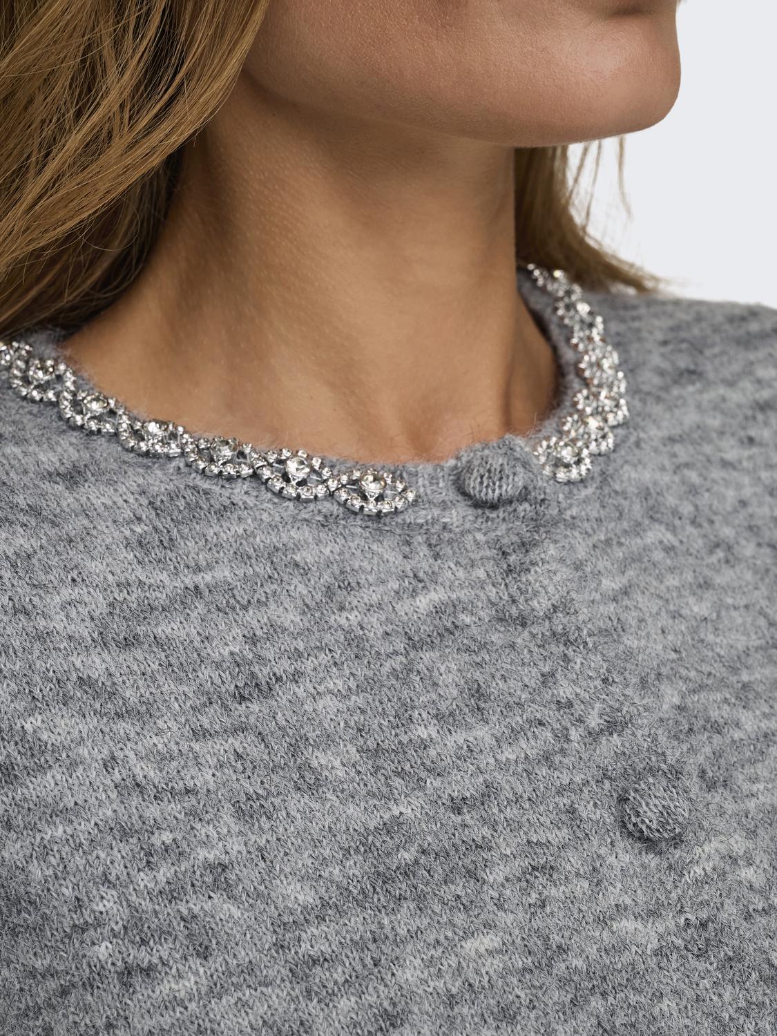 Ordinær pris 499,95 krGi stilen din et løft med JDYALVA LIFE 2/4 EMBEL CARDIGAN KNT NOOS, en elegant og tidløs cardigan som tilfører både mykhet og varme til antrekket ditt. Den flatterende passformen og de delikate rhinestones gir et sofistikert preg, perfekt for spesielle anledninger.