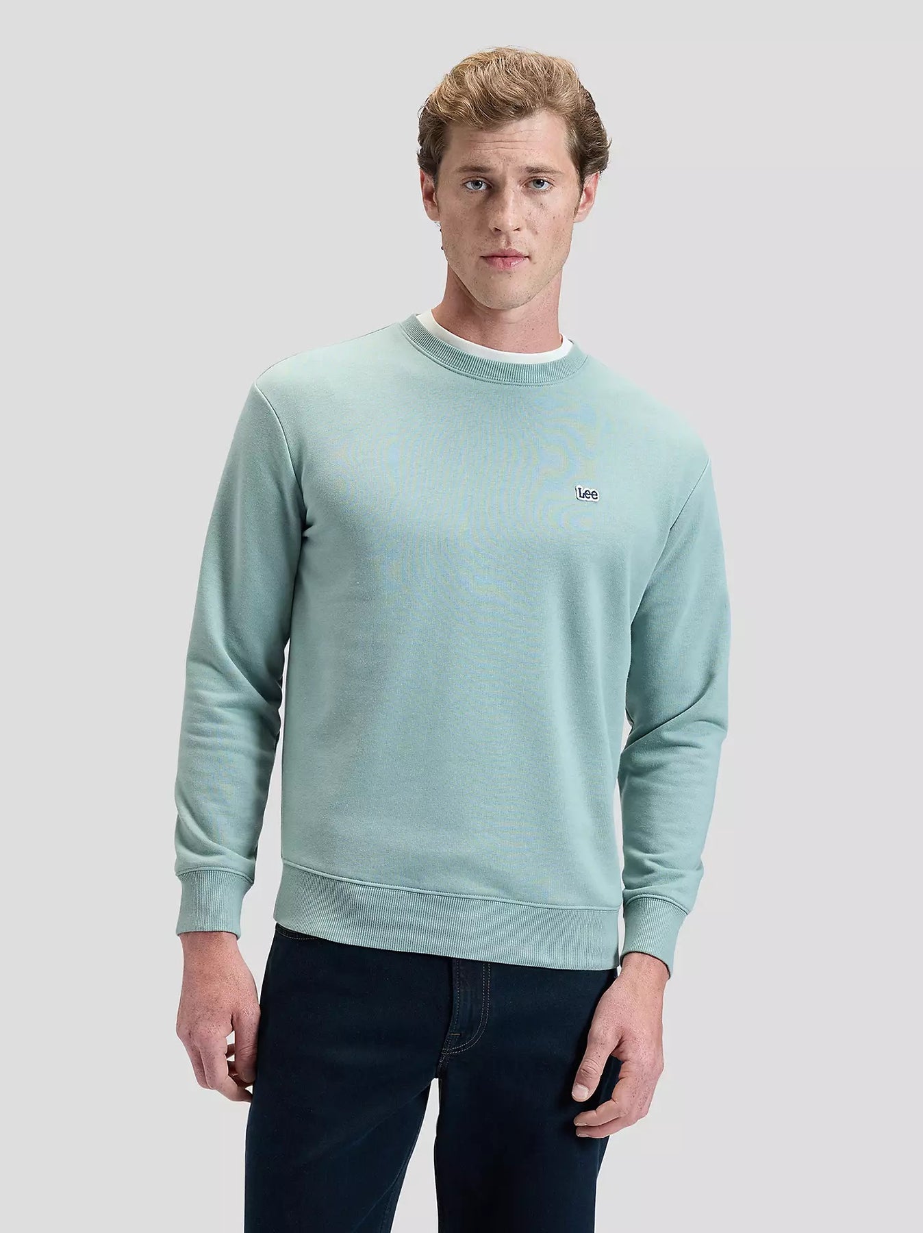 En supermyk genser med normal passform er et brukervennlig plagg som du kan bruke til praktisk talt alt. Med lange ermer og en enkel rund hals ser den like bra ut med shorts, chinos eller favorittjeansene dine. Dette fleecestoffet, som ikke er børstet for de varmere månedene, er laget av en blanding av bomull og resirkulert polyester. En pen sommerlig grønnfarge med en brodert lapp på brystet gir et signaturpreg fra Lee.