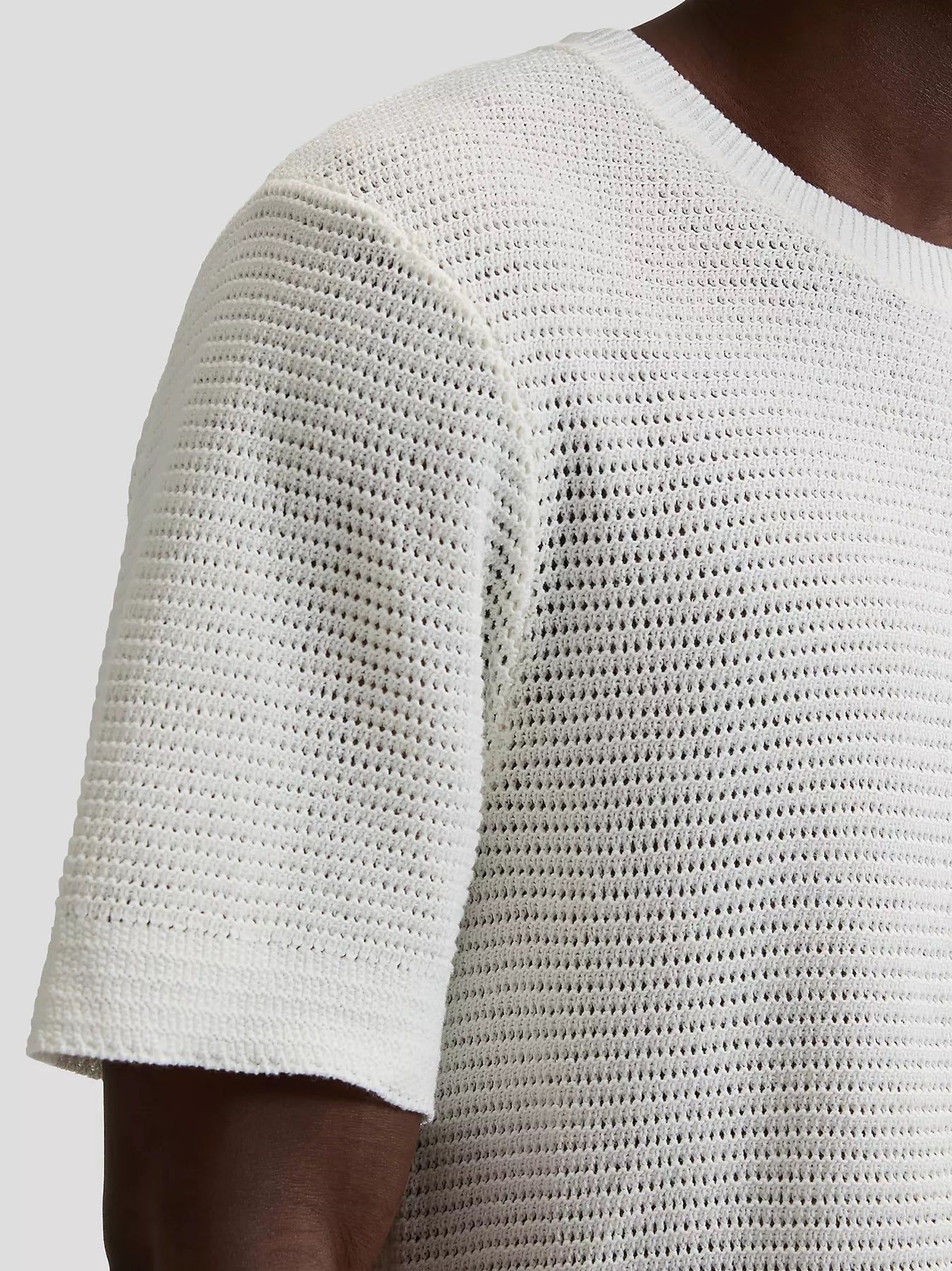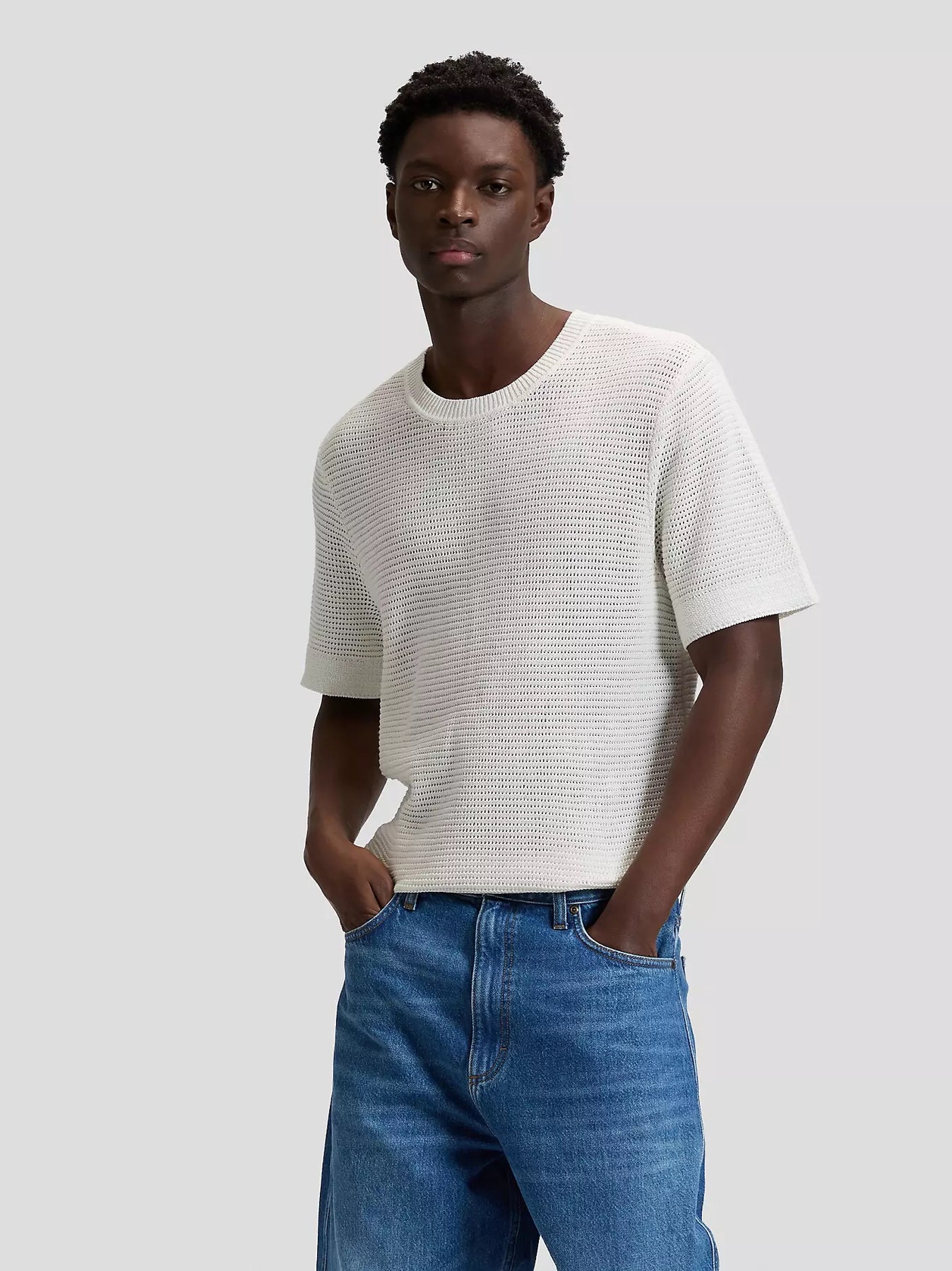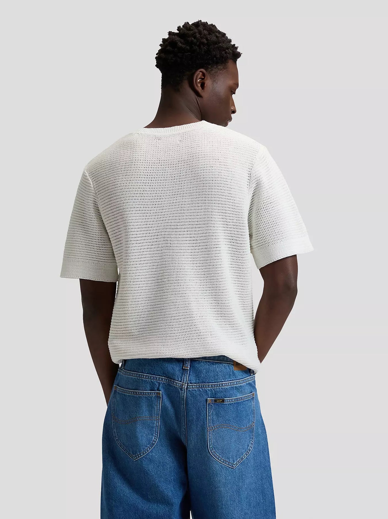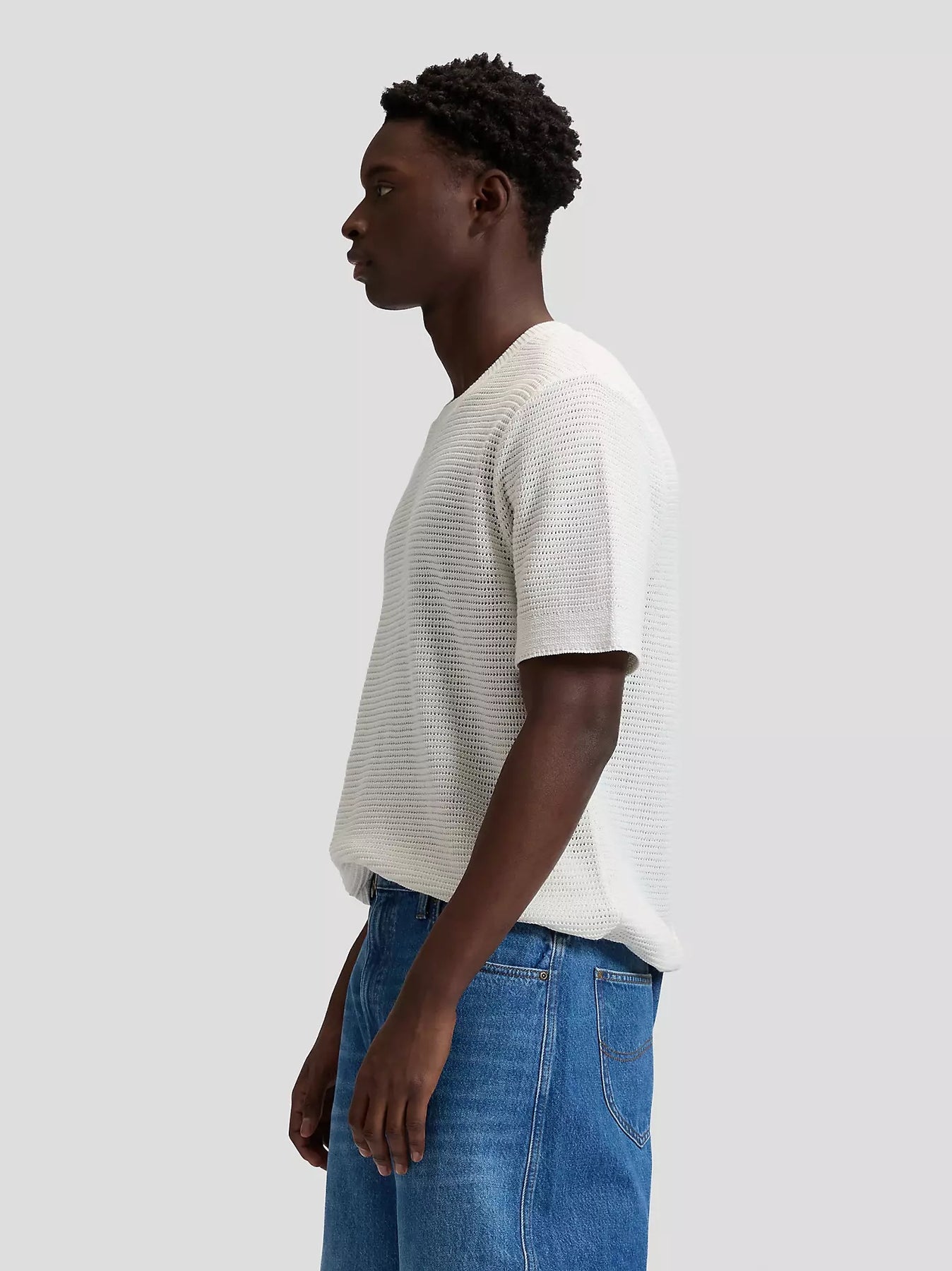 Denne heklede t-skjorten fra Lee gir en frisk vri på hverdagsgenseren din med rund hals. Perfekt for milde sommerdager, den er lett og luftig, men med akkurat passe mengde struktur for å holde det pent. Strikket i en luftig blanding av bomull og lin som føles deilig og kjølig mot huden. Den naturlige fargekombinasjonen holder stilen ren og nøytral.