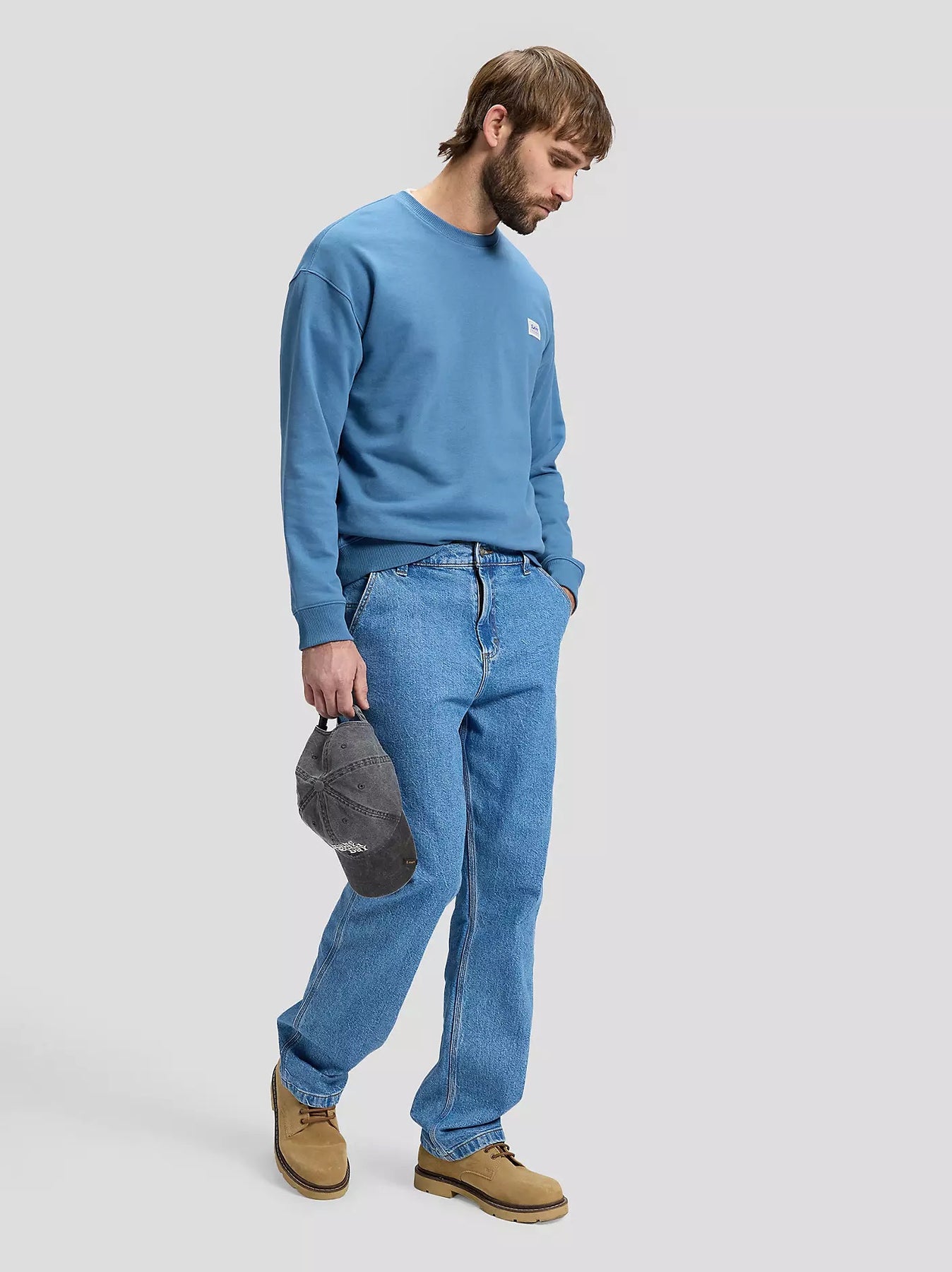 Denne klassiske Workwear-genseren med avslappede passformen i en klassisk blåfarge: Gir den en superkomfortabel, litt overdimensjonert silhuett, mens den vevde Workwear-logoen gir en førsteklasses følelse og et snev av tradisjon. Laget av en bomullsblanding med en ubørstet finish, perfekt for varmere dager.
