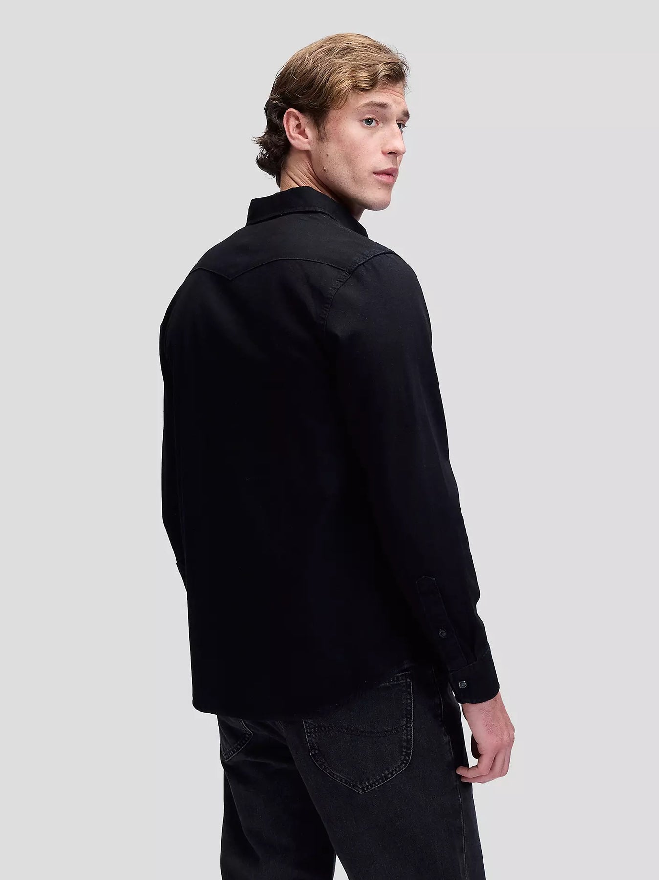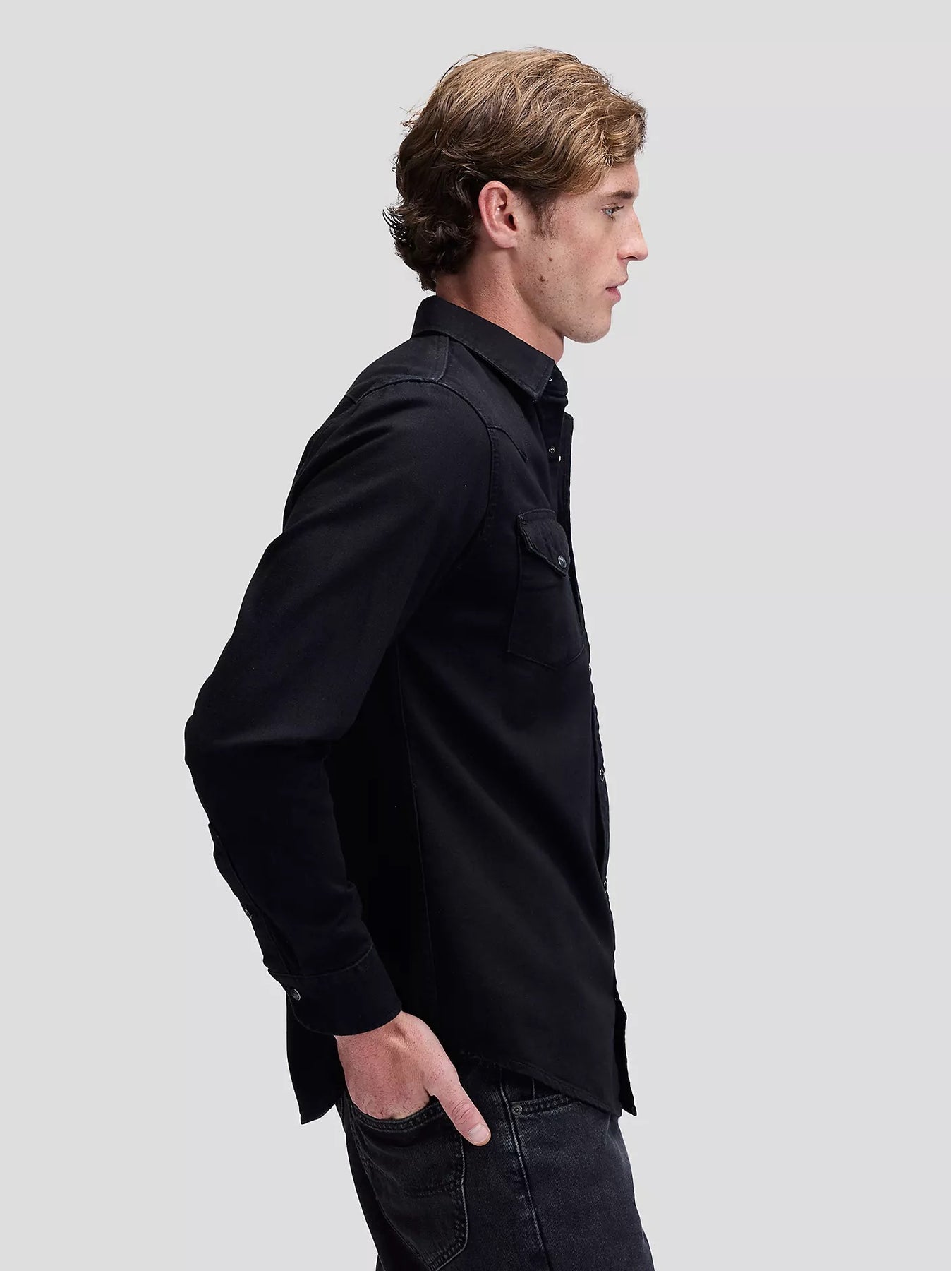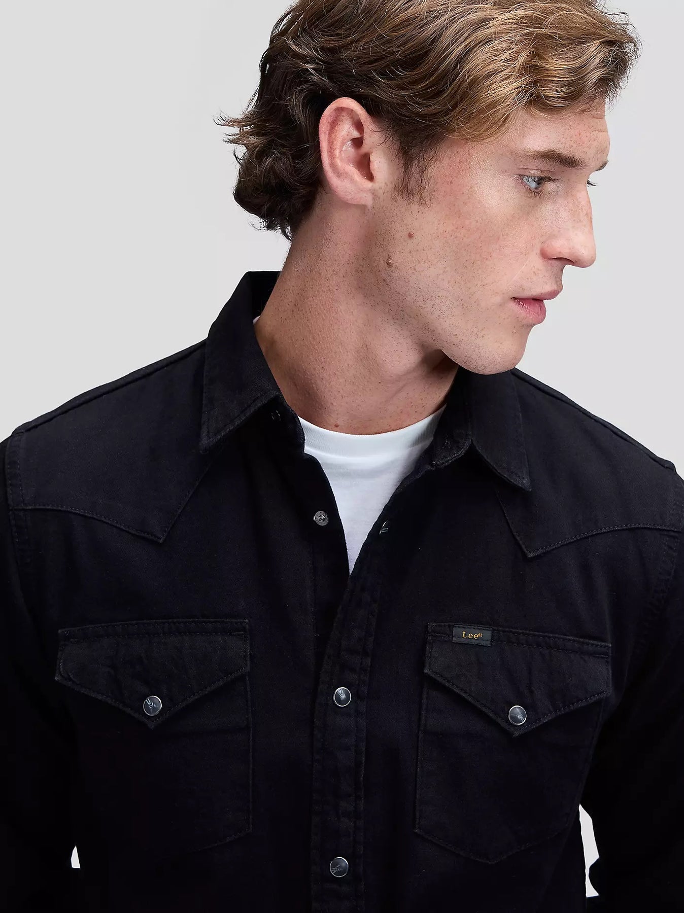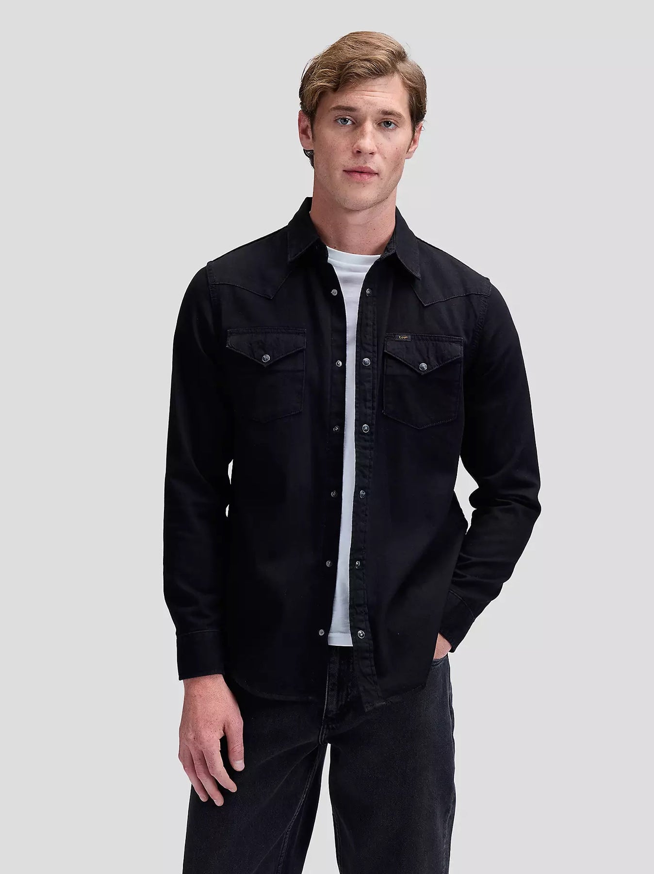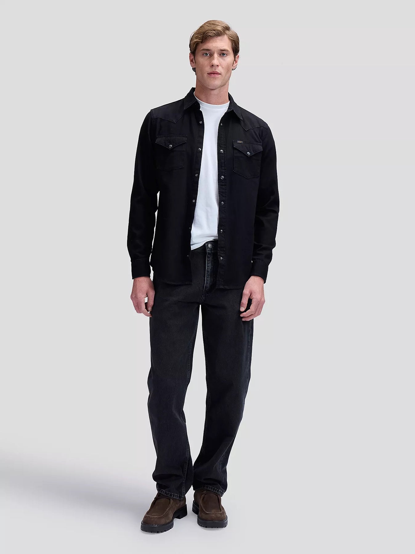 Denne westernskjorten er den perfekte måten å legge til et subtilt preg av amerikansk arv til antrekket ditt. Denne skjorten er slitesterk, men likevel lett, med nok fleksibilitet. Den er ferdig i klassisk svart med matchende svarte knapper for et rent, minimalistisk utseende.