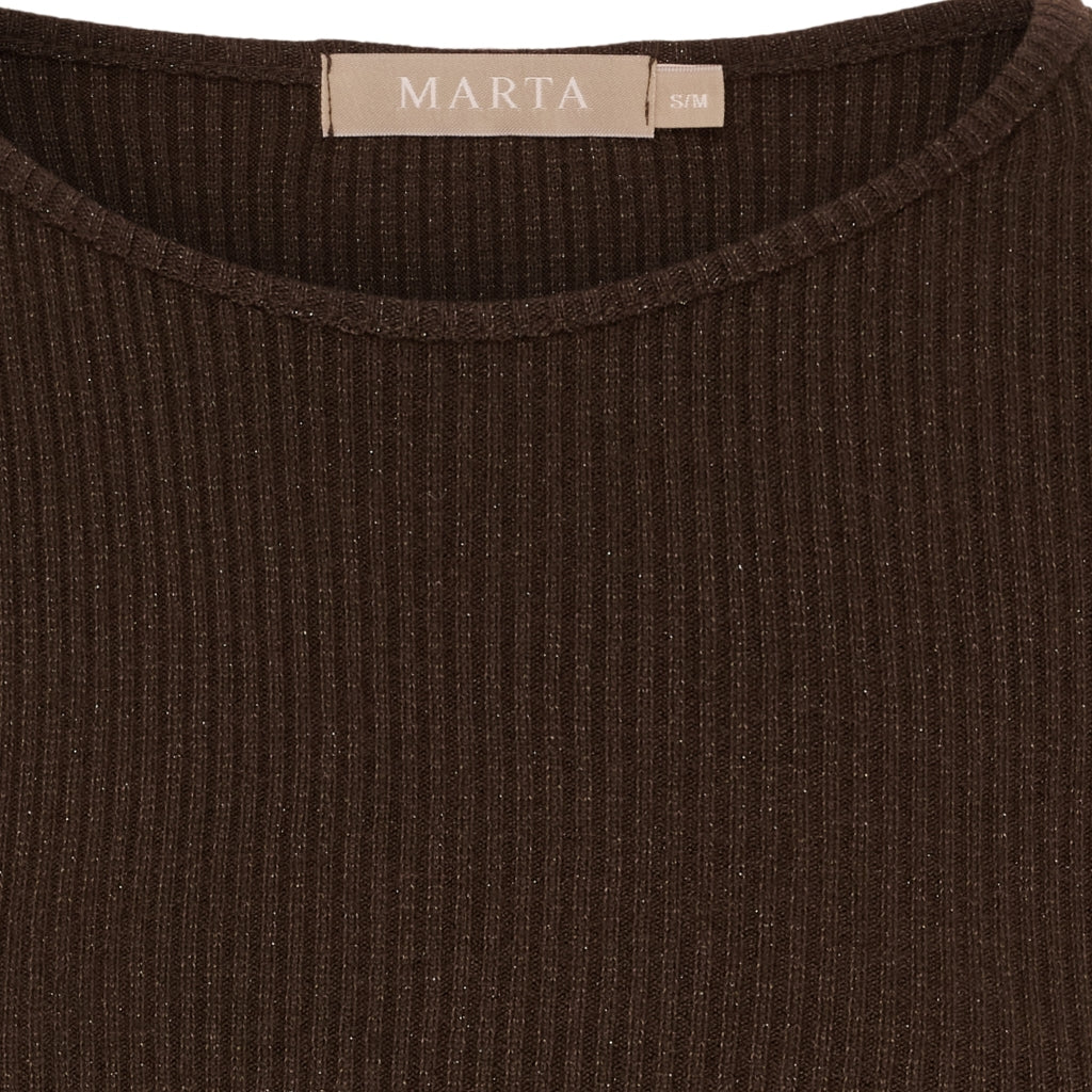 Ribbestrikket genser i nydelig brunfarge med glitter