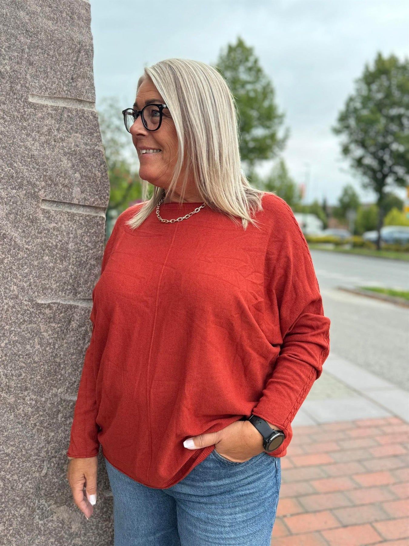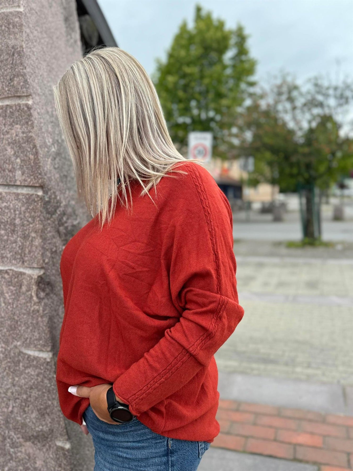 God hverdagsgenser med flettedetaljer på erme i OneSize fra Massimo