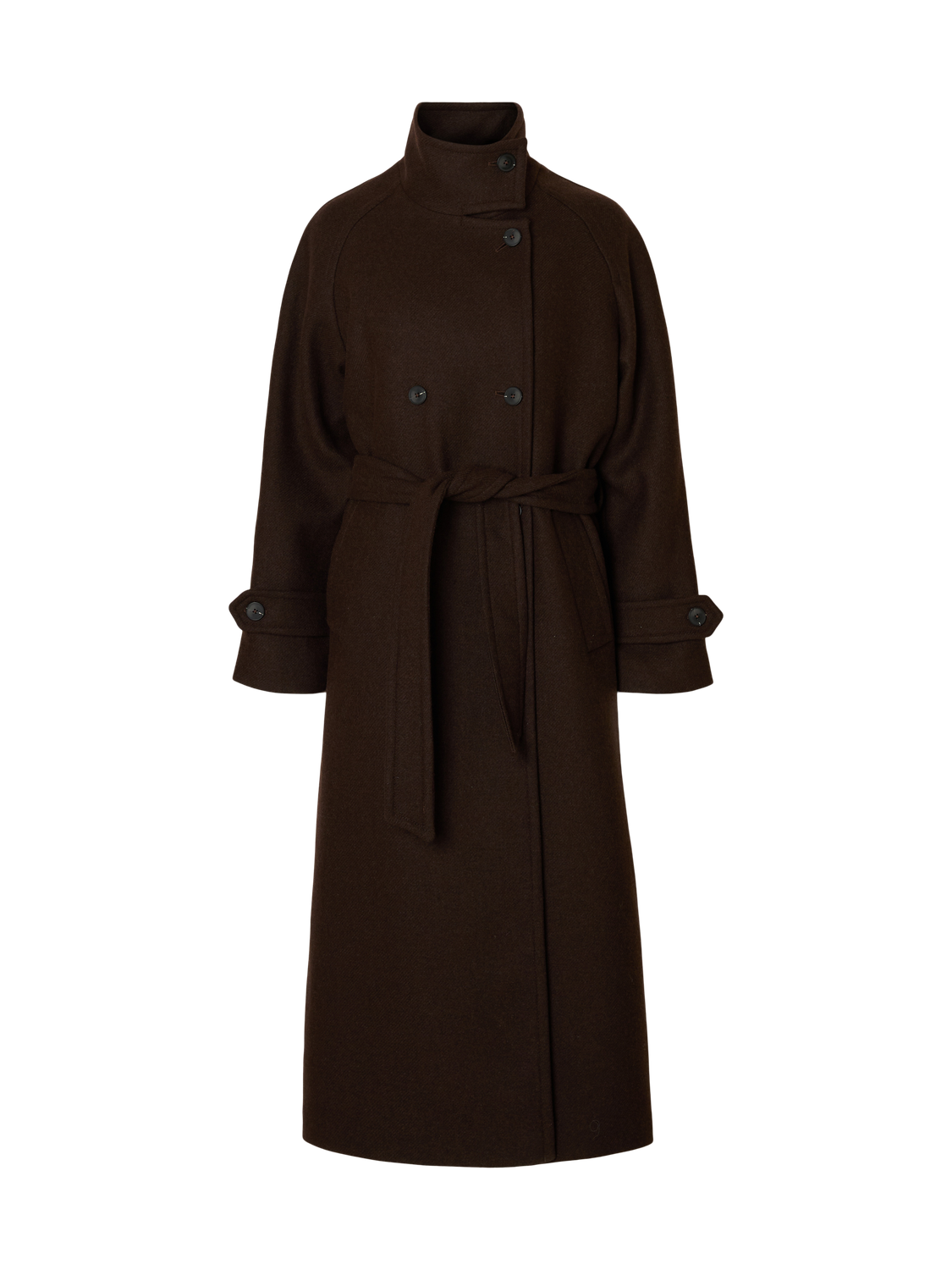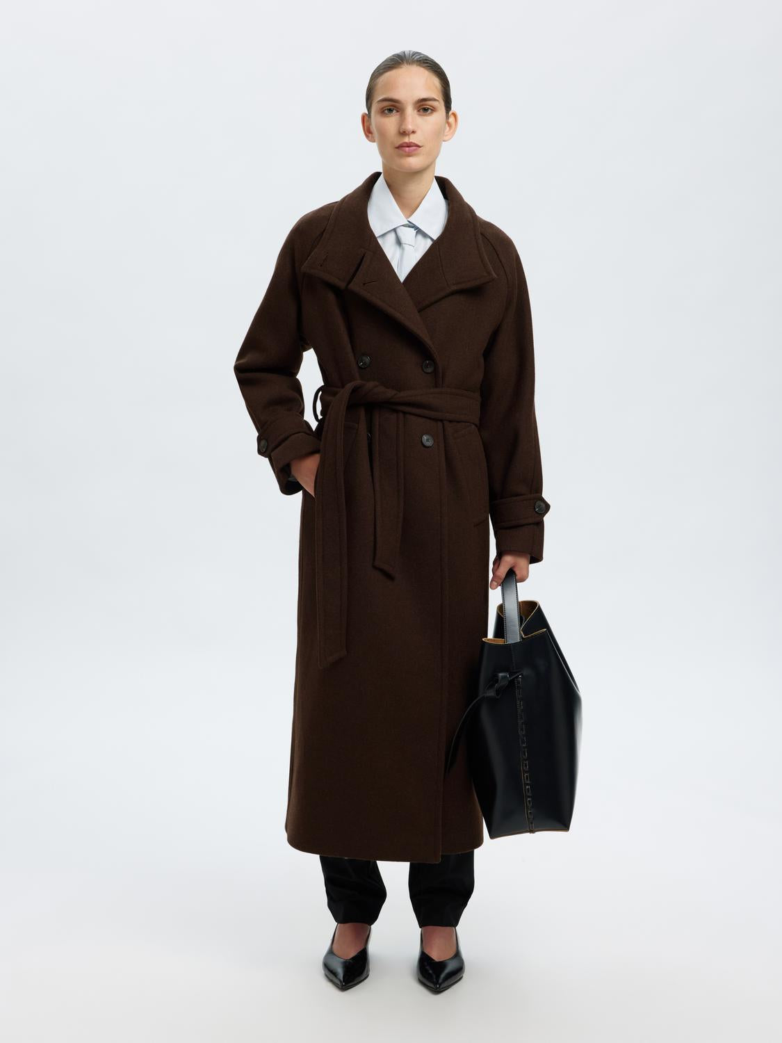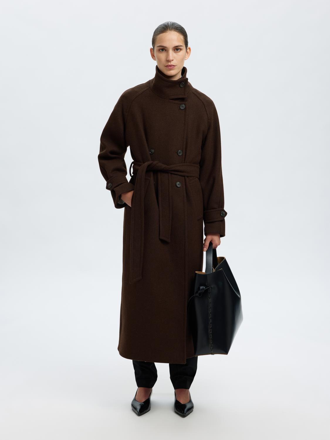 SLFMADELINE MANTECO COAT er en elegant frakk med høy hals og dobbeltspent knappelukking, perfekt for kalde dager. Den har mansjettknapper og flere lommer, inkludert innerlomme og sidelommer, som gir både stil og funksjonalitet. Fôret er laget av resirkulert polyester, noe som gir en behagelig følelse mot huden.