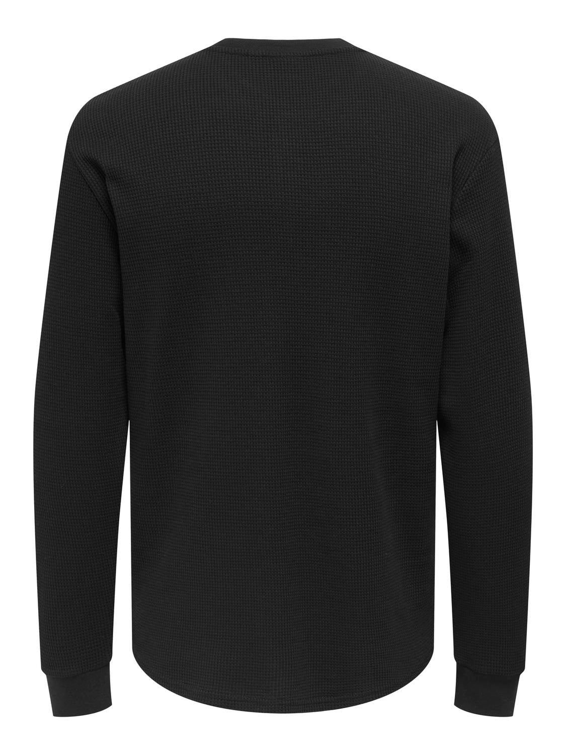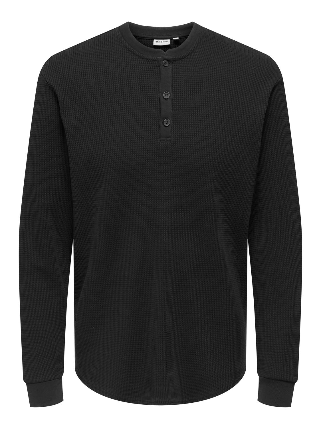 Ordinær pris 349,95 krONSTOBIE REG LS HENLEY TEE NOOS er en stilren og komfortabel langermet t-skjorte i sort, perfekt for hverdagsbruk. Den er laget av en myk blanding av bomull og polyester, noe som gir både pusteevne og holdbarhet.