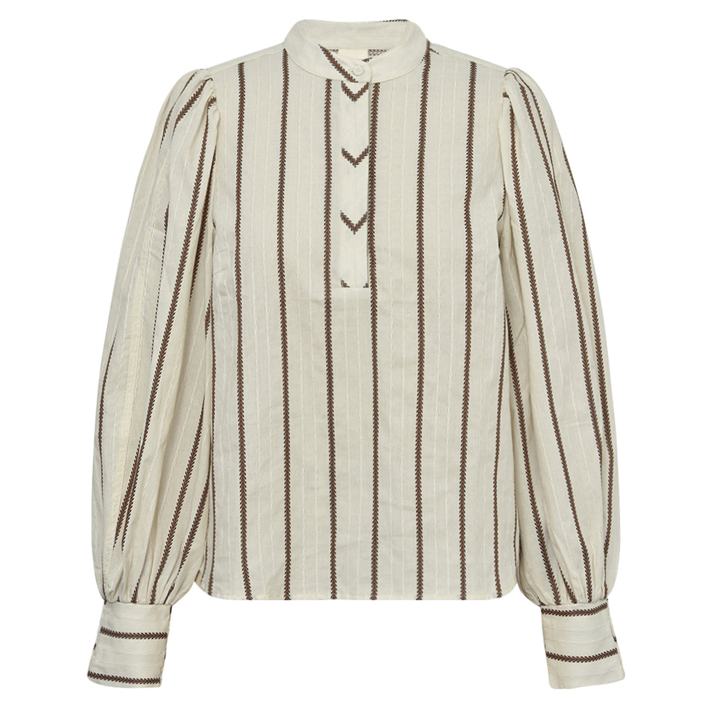 Ordinær pris 1.199,00 krJacquardvævet skjortebluse i off-white med brune striper, laget av 100% bomull. Denne skjorteblusen kombinerer stil og komfort, perfekt for hverdagsbruk.