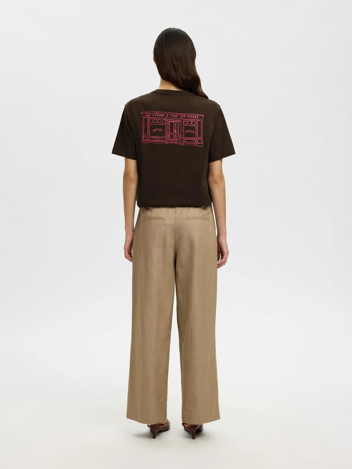 Ordinær pris 499,95 krSLFRELAXED BROOK SS HOTEL AMOUR TEE er en stilren t-skjorte laget av 100% økologisk bomull, perfekt for en avslappet hverdagslook. Den mørkebrune fargen, Delicioso, gir et elegant preg som enkelt kan styles med forskjellige antrekk.
