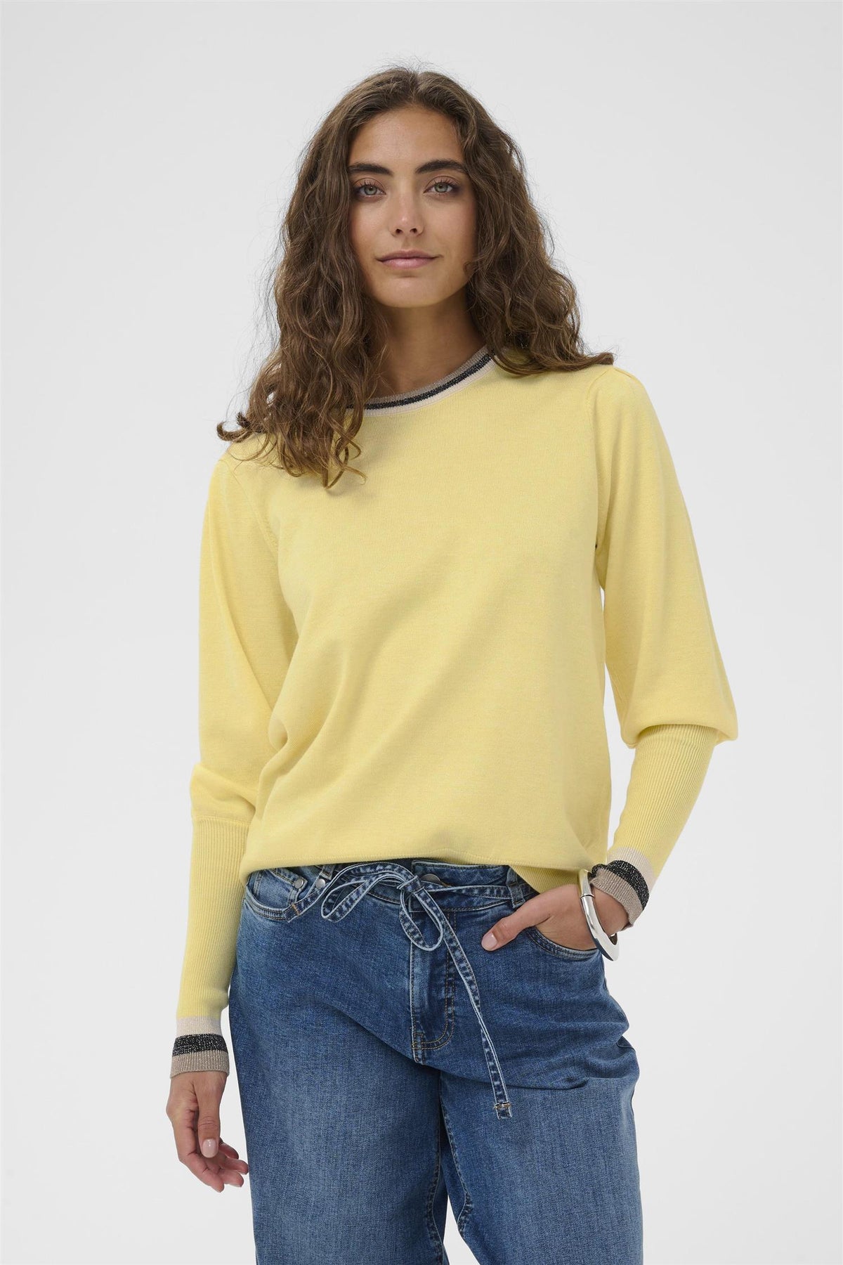 Ordinær pris 799,95 krCUbetri Annemarie Pullover er en stilren og komfortabel genser som passer perfekt til hverdagsbruk. Den myke og elastiske kvaliteten gir en behagelig passform, mens den delikate fargen Lemon Meringue Melange tilfører et friskt preg til garderoben.