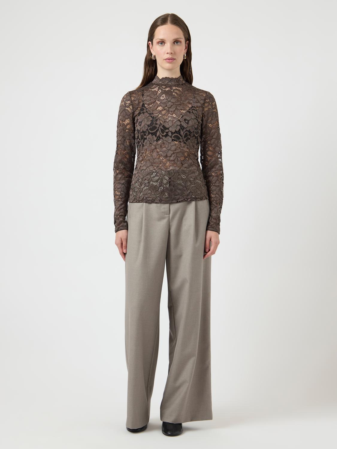 Ordinær pris 499,95 krYASLACEY LS LACE TOP S. NOOS er en elegant bluse laget av delikat blondestoff med feminine mønstre, perfekt for å oppgradere garderoben din. Den har høy hals, lange ermer og en slim fit-passform som gir et sofistikert preg.