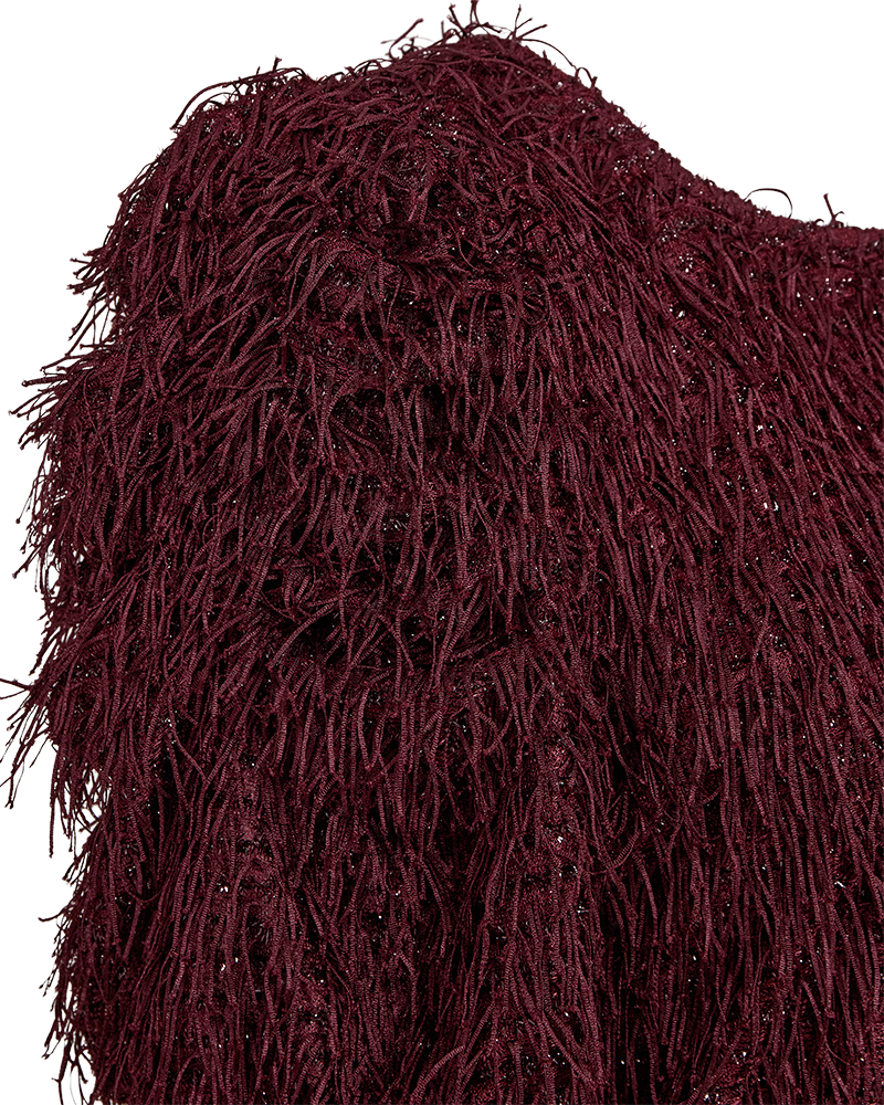 Lekker pyntetopp med glitter, frynser og en liten puff på erme fra Freequent
